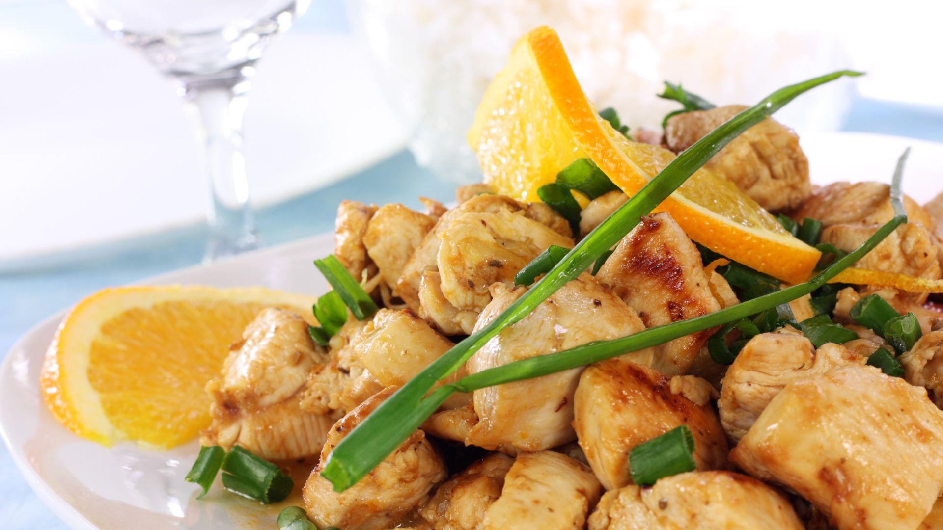 👩🏽🍳Cuando este cocinada, añade la pechuga a tacos, unos trocitos de piel de la naranja, el zumo de la naranja escurrida, un chorro de soja, la pimienta y el tomillo